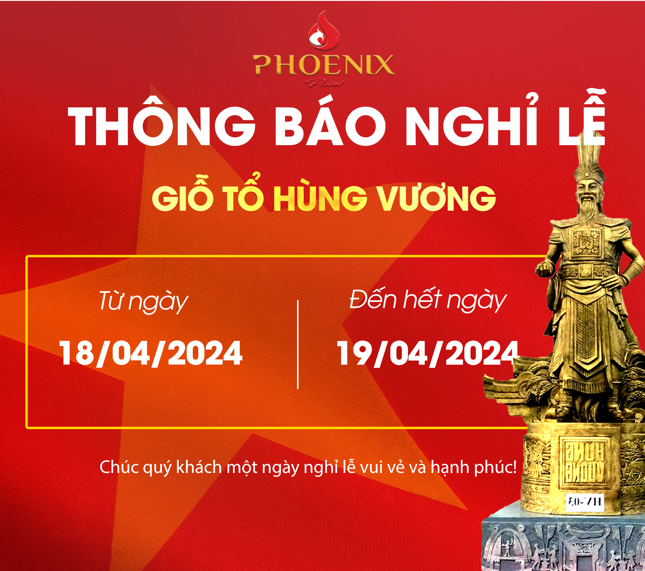 Nhân dịp kỷ niệm Giỗ tổ Hùng Vương 10/3 Âm lịch, PHOENIX - PAINT xin trân trọng thông báo lịch nghỉ lễ như sau: