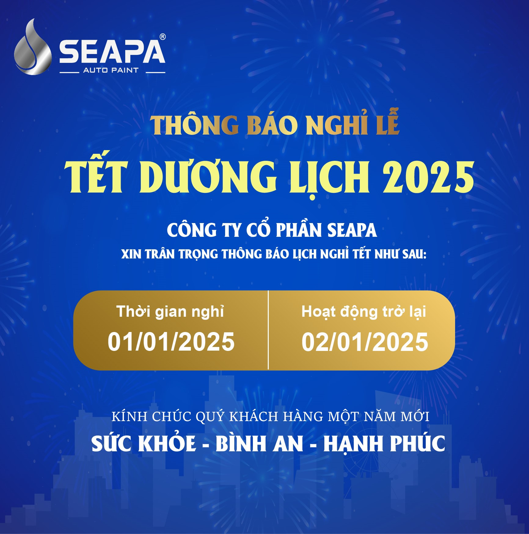 THÔNG BÁO NGHỈ TẾT DƯƠNG LỊCH 2025